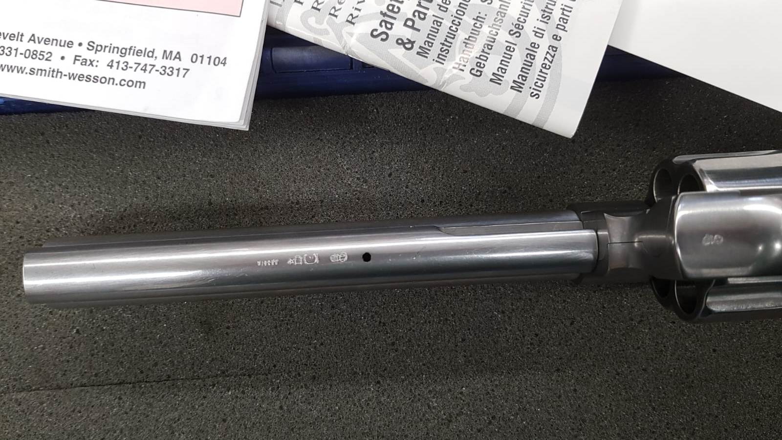 Smith&Wesson 629-6 .44 Magnum in sehr gutem Zustand mit original Koffer und Bianchi Lederholster. Samtig-weicher Schlossgang, glasklar brechender Abzug.
