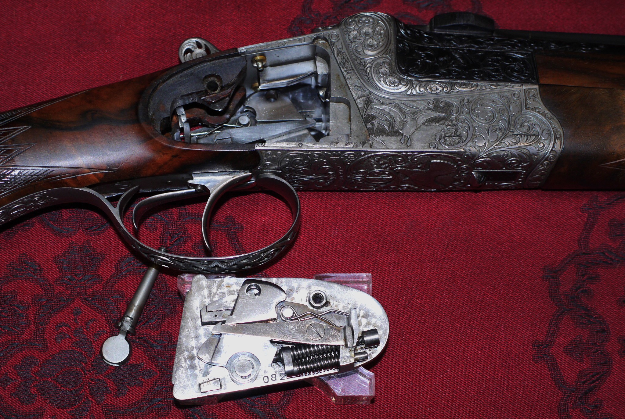 Sehr schöne, aufwändige Ziselierung mit ges. 13 Tierstücken, durchbrochenem Abzugsbügel und altdeutschem Lauf.